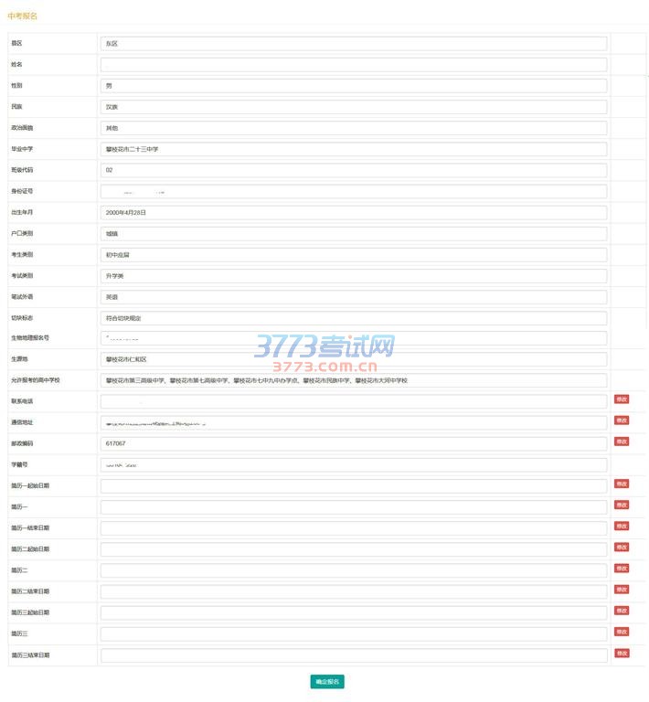 5、关闭网上报名的浏览器页面后,考生应再次登录网报系统,点击中考报名按钮,检查考生所填各项信息是否完整准确。如有问题,及时解决。