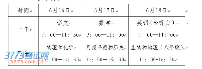 考试科目为语文、数学、外语、物理和化学、思想品德和历史。语文、数学、外语(其中外语听力占20%)单独制卷,为A、B卷形式,分值各150分(A卷100分、B卷50分);物理和化学合卷分值150分(按80:70比例,其中物理实验、化学实验各占20分); 思想品德和历史合卷分值100分(按1:1比例)。