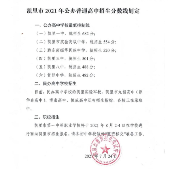 2021年贵州黔东南凯里市普高录取分数线公布,希望对同学们有所帮助,仅供参考。
