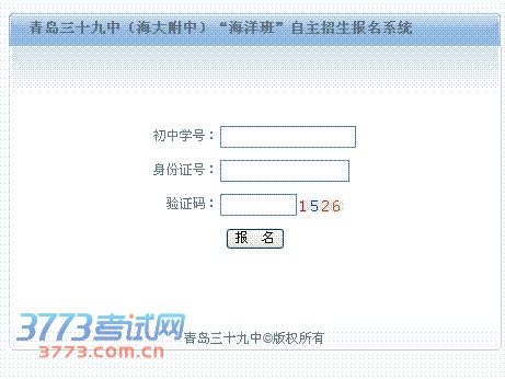 报名方式:学生登陆青岛三十九中(海大附中)海洋班自主招生网上报名系统(http://lwbm.qdedu.net/qdbm39/),按照要求填写有关信息,检查无误后,点击“确认提交”。提交成功后,打印报名系统自动生成的《青岛三十九中(海大附中)2014年海洋班自主招生报名信息表》一式两份(初中学校存档一份,报送青岛三十九中一份)。