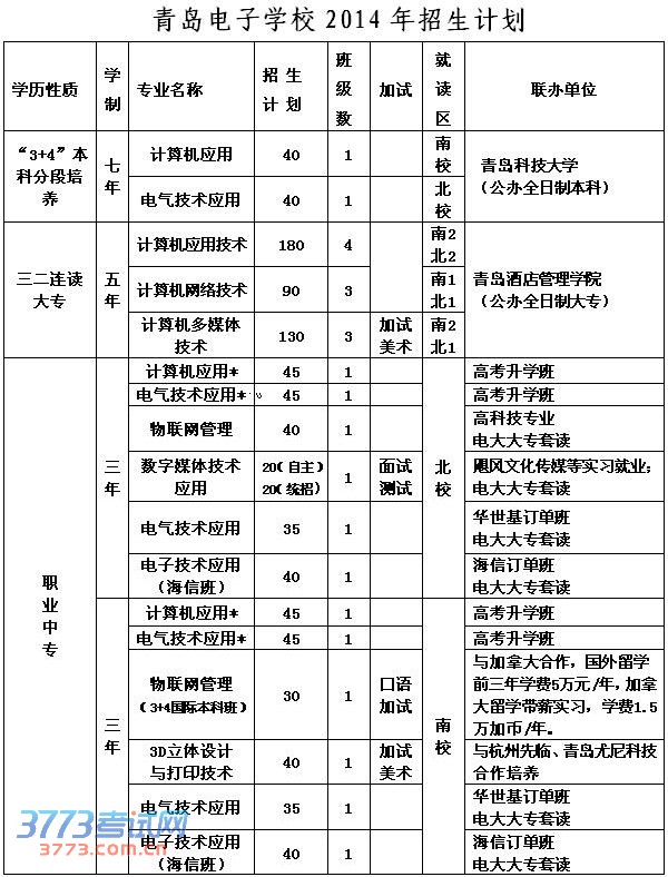 注:除中加3+4国际本科班外,根据国家有关政策其它专业在青岛电子学校上学期间一律免学费;农村和城市家庭困难学生享受国家助学金政策。