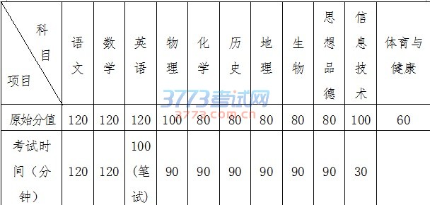 (二)各科目原始分值及考试时间。