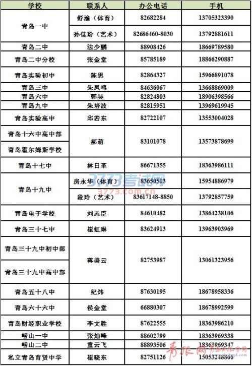 2017青岛体育艺术特长生和足球后备人才招生联系电话