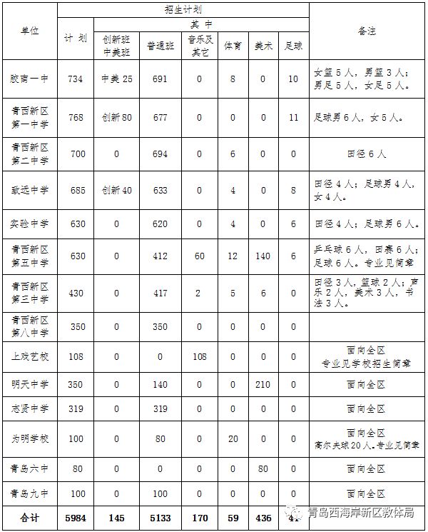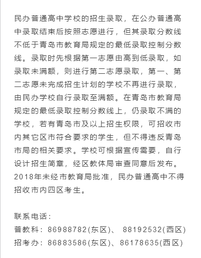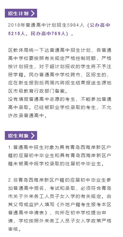 2018年黄岛区普通高中招生方案