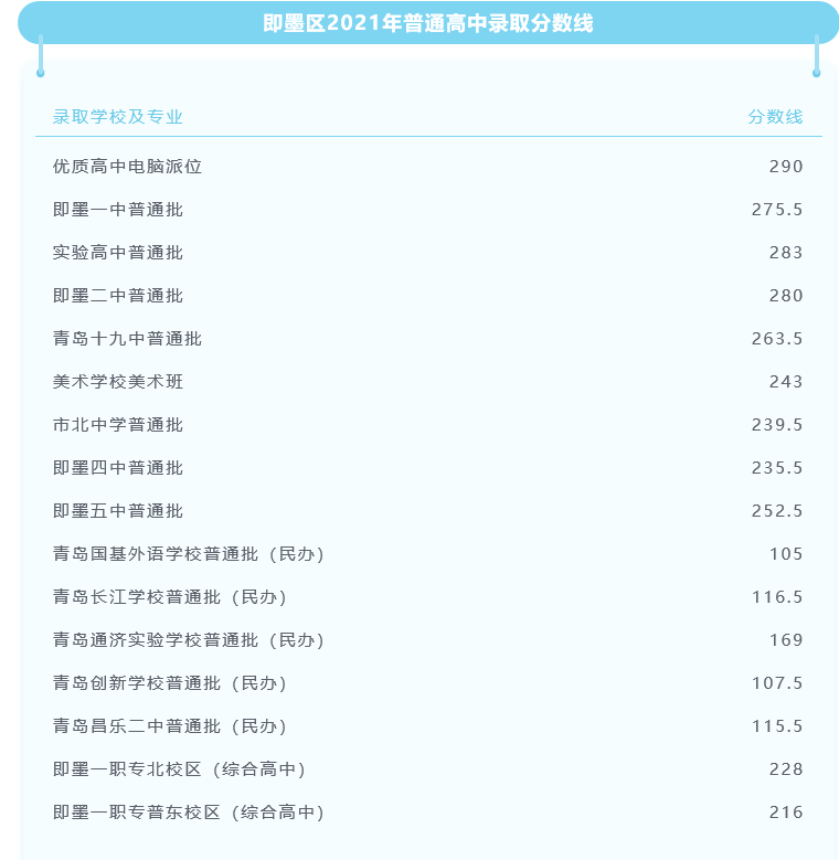 2021年山东青岛即墨区普高录取分数线公布,希望对同学们有所帮助,仅供参考。