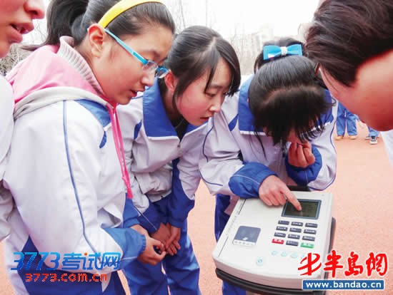 男女生跑时,考生手上都会带有腕表,腕表是独立的计时器,考生冲刺到终点,每个人的成绩立即显示在操作台上。而从前的考试中,考生冲线后每人要领一张扑克牌,便于裁判记住名次。为让学生适应电子裁判,学校已组织了模拟测试。 (记者 赵黎)