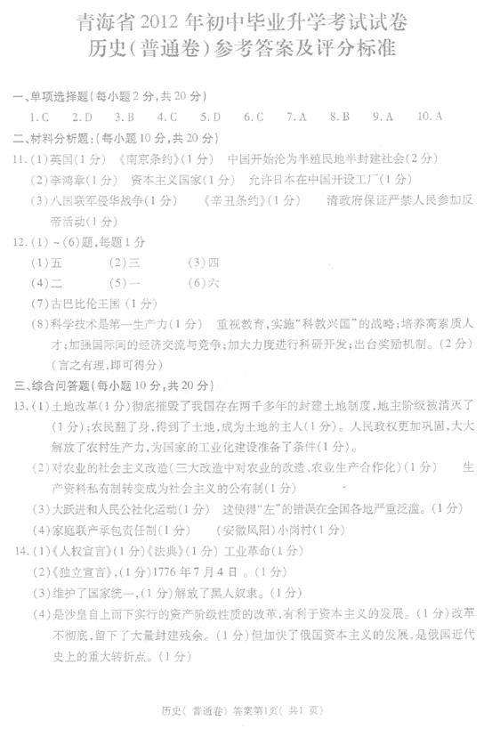 2012青海试题解析
