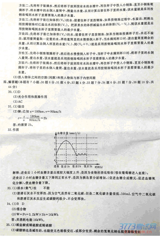 2015年衢州中考科学试题及答案发布