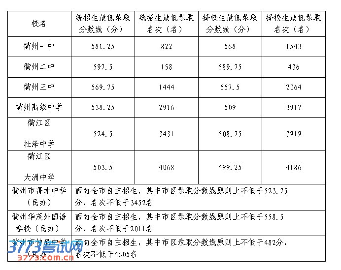 2013衢州中考高中录取分数线划定