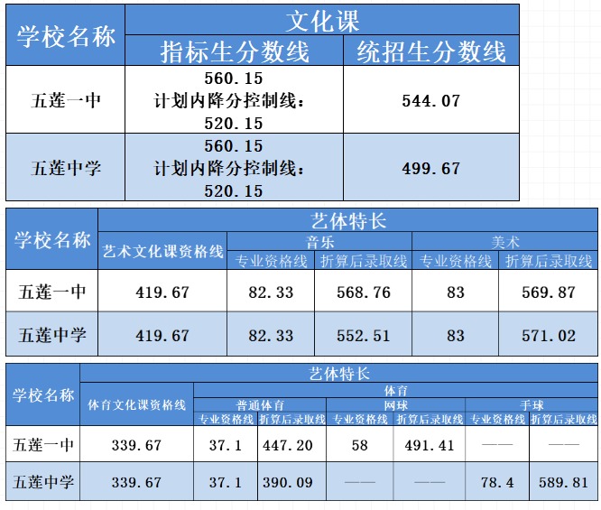 注:①艺体特长考生需均达到专业资格线和文化课控制线后,分别根据志愿和家庭居住区域,从高分到低分录取和调剂(网球和手球特长生不调剂),录满计划为止。