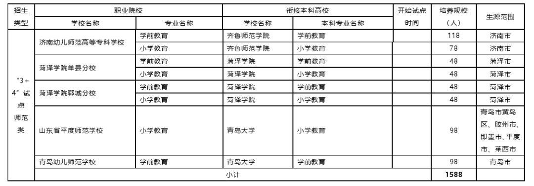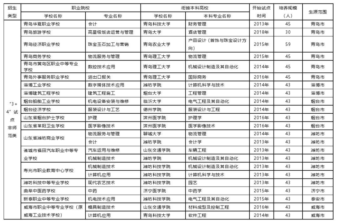 (三)青岛市继续与天津职业技术师范大学合作开展“3+4”试点,培养规模70人。