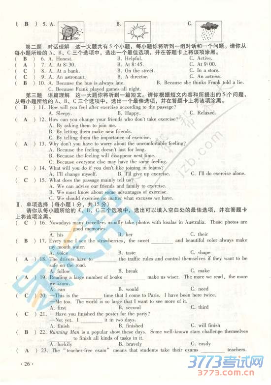 2015山西省中考英语试题及答案发布