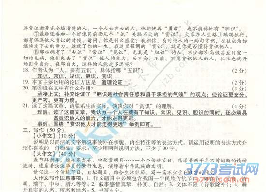2015山西中考语文真题及答案发布