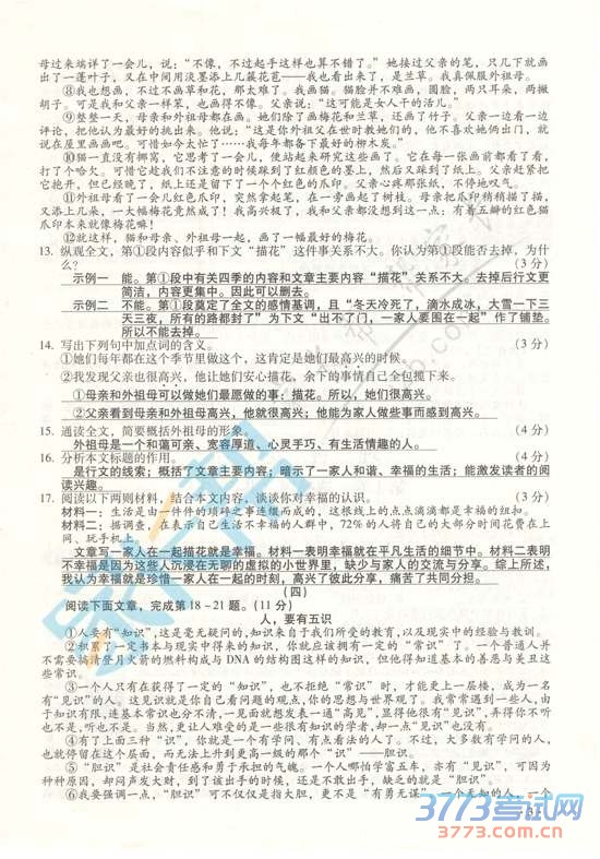 2015山西中考文综试题及答案评分标准发