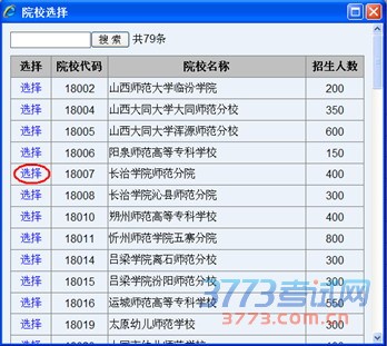 单击上图中专业名称栏中的“选择”按钮,弹出如下页面: