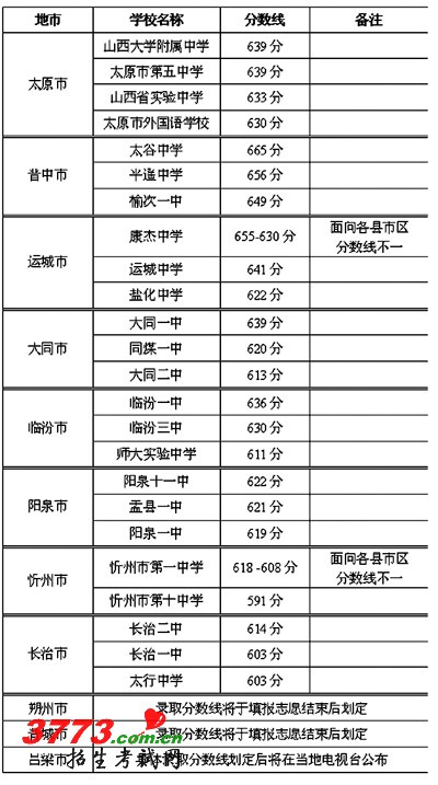 今年,我省共有47万余名考生报名参加中考,其中,太原市报名参加中考的49696人。太原市招考中心划定了太原市普通高中录取预估分数线。同时,大同市、忻州市、临汾市、运城市、阳泉市、长治市的多所高中学校录取分数线也已划定。(详见附表)