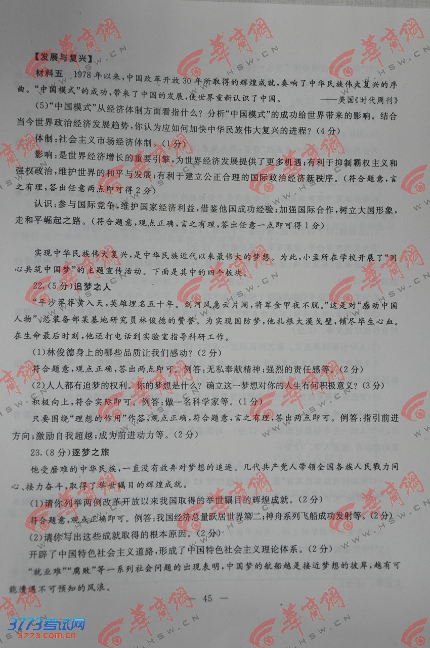 2013陕西中考政治历史试题答案发布