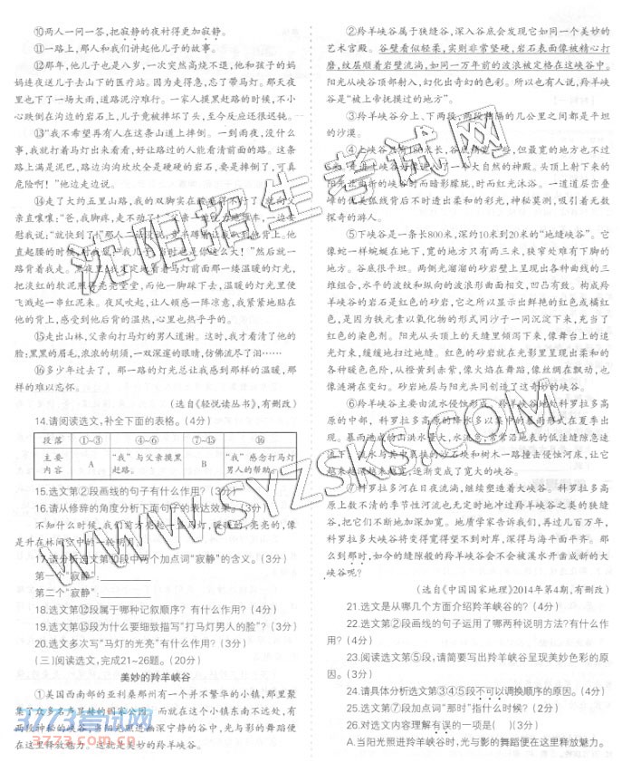 2014年沈阳市中等学校招生统一考试语文试题与参考答案