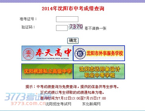 沈阳市2014年中考成绩查询7月12日13时发