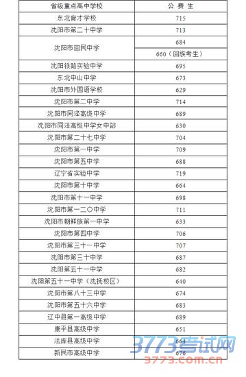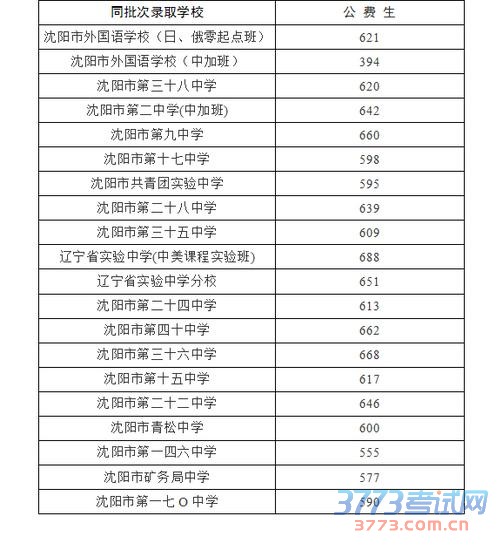 2015沈阳中考提前批第一批高中录取分数线公布