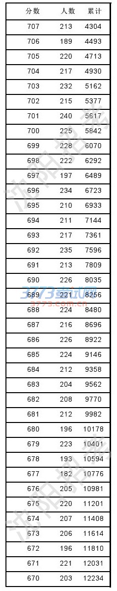2016年沈阳市初中学生学业水平(升学)考试成绩统计表