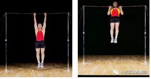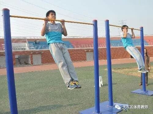 引体向上主要考核学生上肢和背部肌肉力量的发展水平,依靠背部肌群和肱二头肌收缩发力,同时对肩带力量和握力也有一定要求。