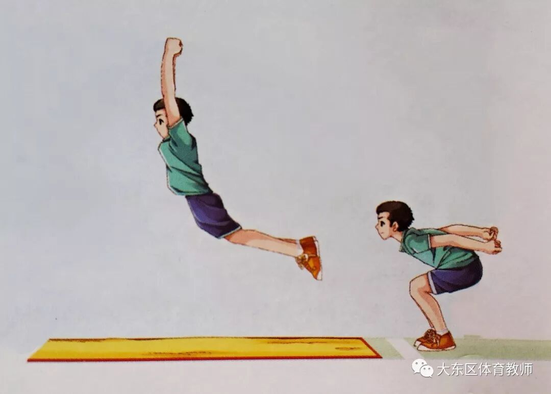 预摆:两臂前后摆动,前摆时两腿蹬伸,后摆时屈膝降重心,上体稍前倾,臂尽量往后摆。