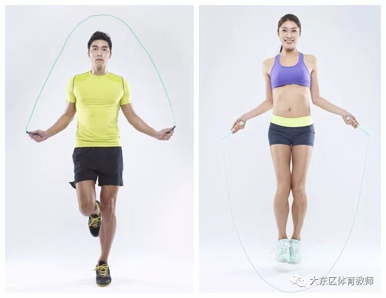 如何确定绳的长度:单人跳绳时,绳的长度是以两手握绳的两端,一脚踩于绳的中间,将绳拉直至腋下为宜。