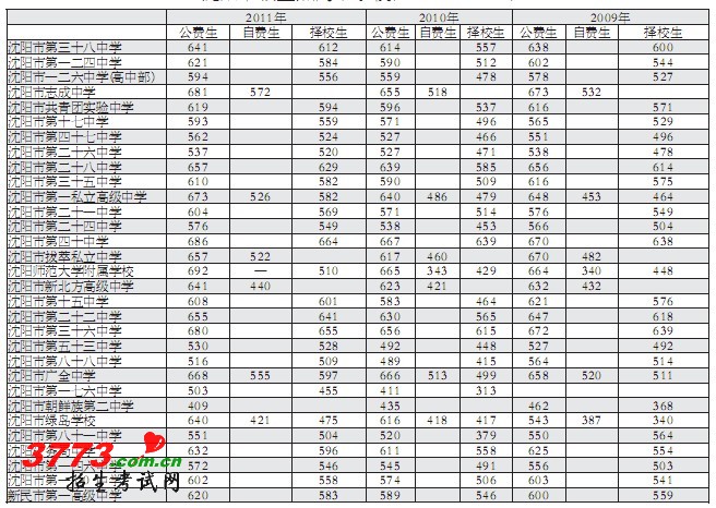 晨报讯(记者 岳巍)为让考生和家长填报志愿时“心中有数”,本报整理了近三年沈阳市省、市级重点高中批次学校2009~2011年