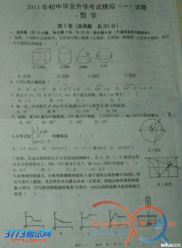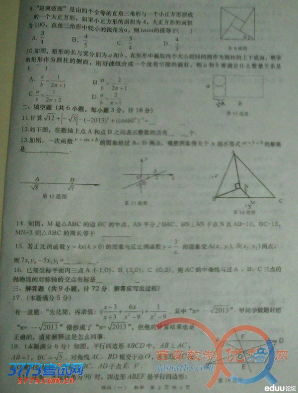 2013年西安中考一模数学试题答案