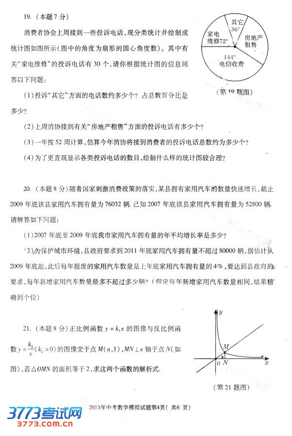 安庆市2013年中考数学一模试题答案(十八校联考)