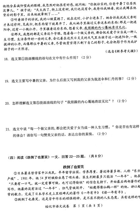 2012年绥化中考语文试题答案及评分标准