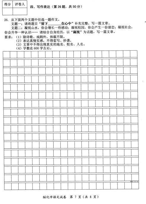 2010年黑龙江绥化中考作文题目