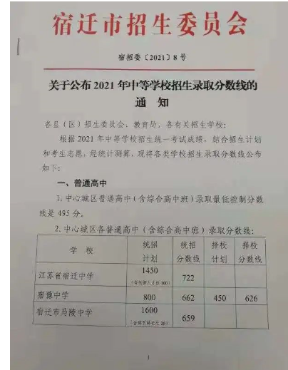 2021年江苏宿迁中考中等学校录取分数线,希望对同学们有所帮助,仅供参考。