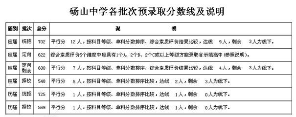 二、在省示范高中录取中,根据省示范高中每一批次(统招、定向、定向剩余、择校)的计划数1:1的比例按总分二从高分到低分进行投档,平行分投档顺序按以下规则进行:对中考总分二相同的考生,以中考科目分数等级作为区分录取先后依据,等级标准高的考生优先录取;考生的中考总分二、中考科目分数等级都相同时,按语文、数学、英语、物理和化学、思想品德和历史科目顺序,分数高的优先录取。考生的中考总分二、科目分数等级相同,且按科目顺序的分数仍不能确定录取的先后时,综合素质评价结果作为录取依据(不含择校生),等级高的优先录取,额满为止。