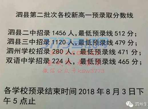 泗县二中、泗县三中、双语中学、泗州学校高一预录取分数线出来啦!