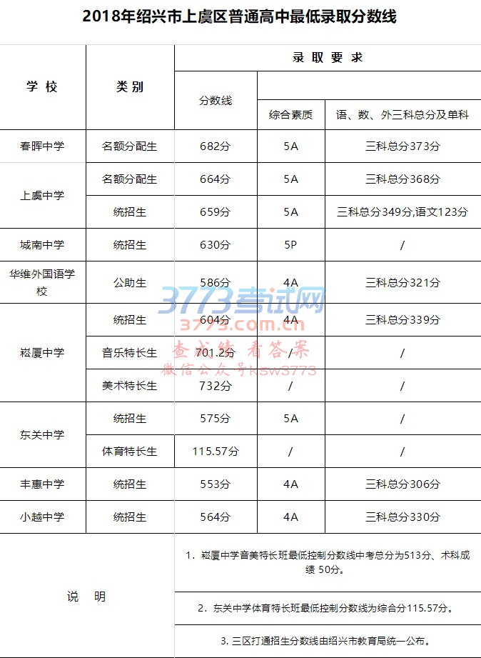 3. 三区打通招生分数线由绍兴市教育局统一公布。