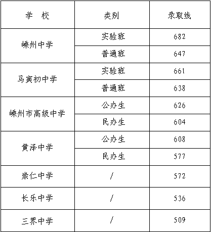 嵊州中学 马寅初中学 嵊州市高级中学 黄泽中学 崇仁中学长乐中学 三界中学录取分数线