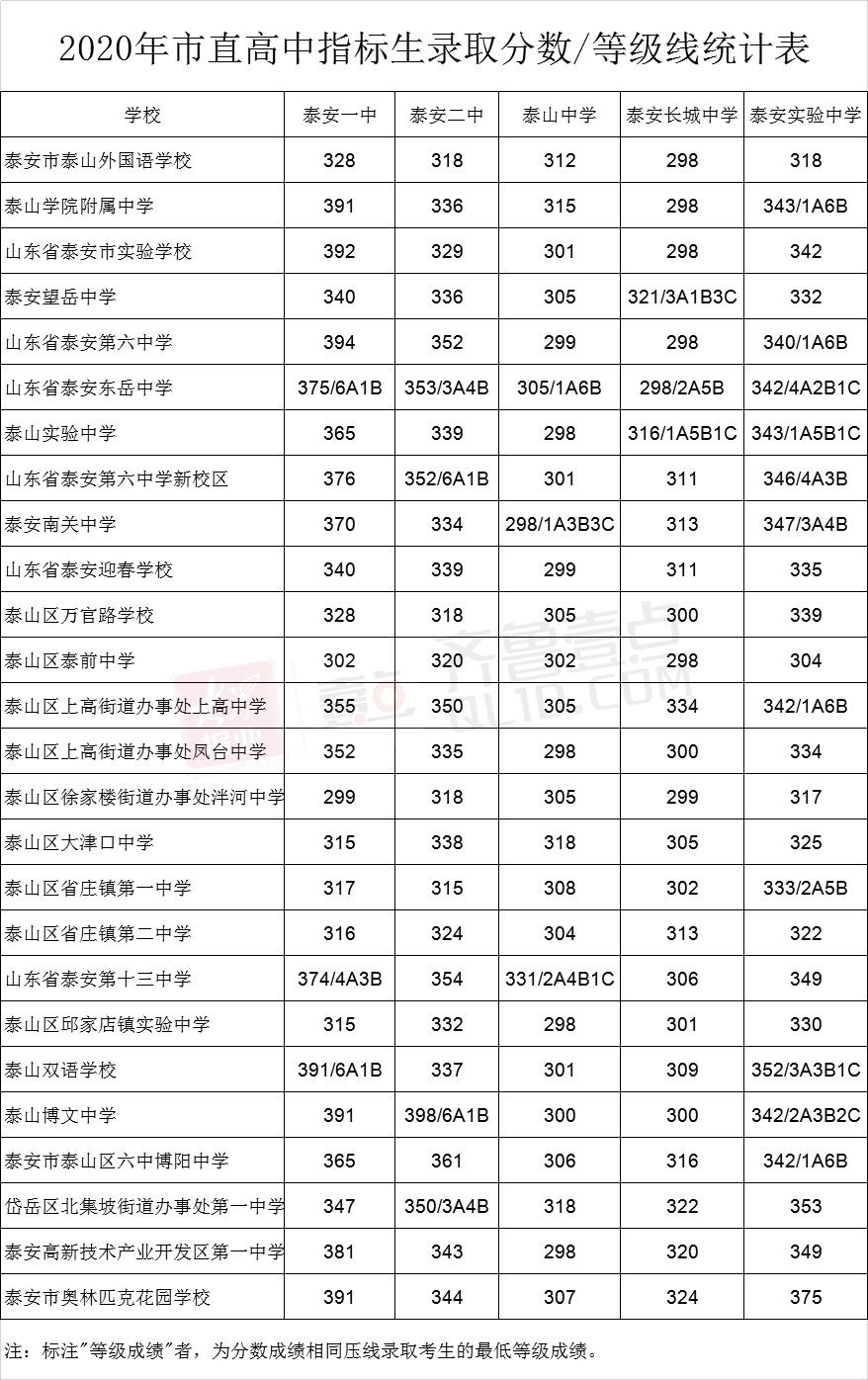 2020泰安市直高中指标生录取分数线出炉!附统招生计划、报考考生分数段统计表