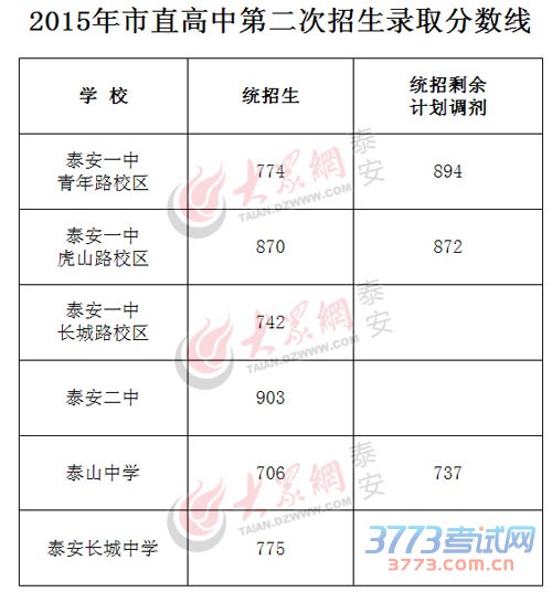 泰安长城中学统招生分数线775分 2015泰安长城中学录取分数线