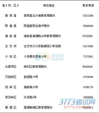 九、太原市各县(市、区)招生办(考试中心)地址、联系电话。