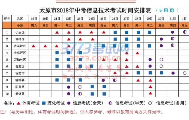 2018太原市中考体育、信息技术、理化实验各区考试安排