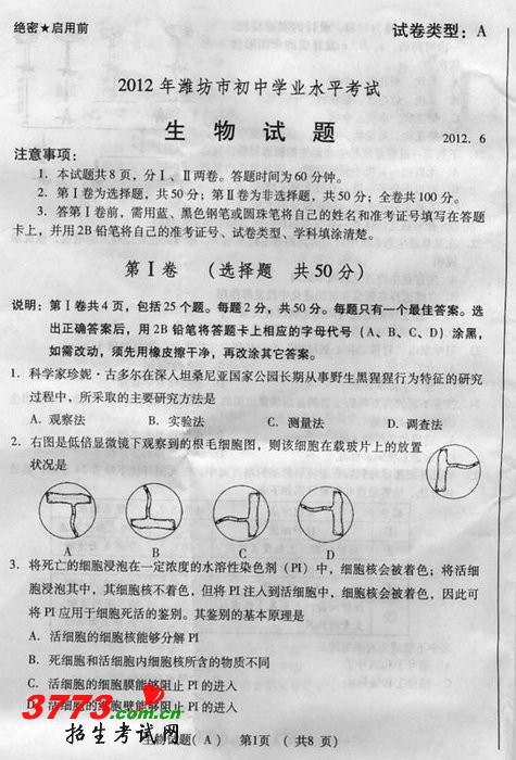 2012潍坊中考数学试题题量较大化学历史挺简单