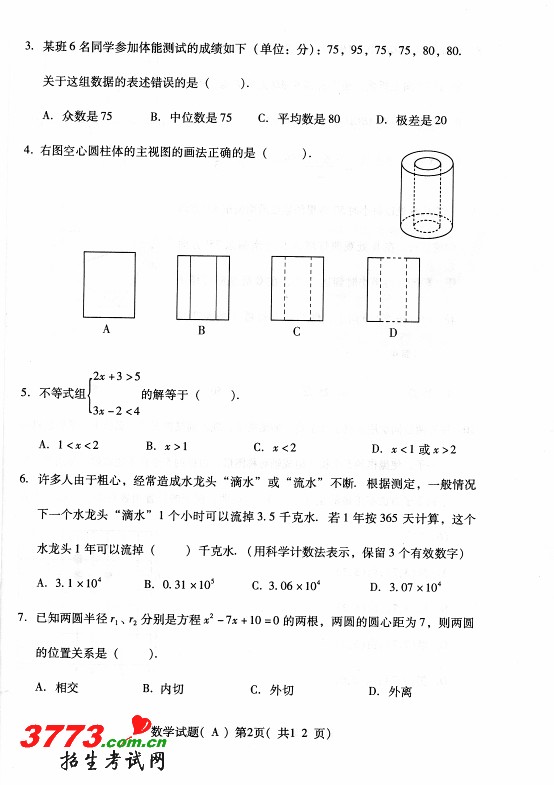 2012年潍坊市中考数学试题及答案
