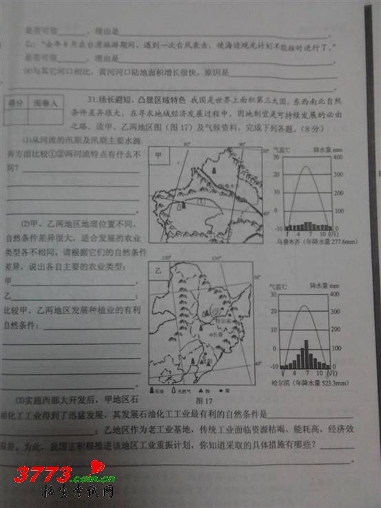 威海市2012地理学业水平考试答案
