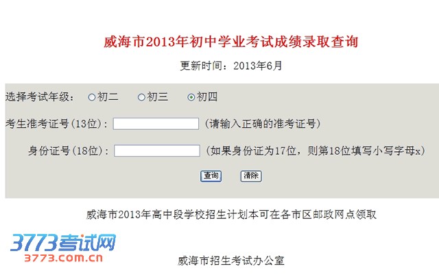 威海市2013年高中段学校招生计划本可在各市区邮政网点领取