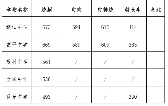 迤山中学统招生673分;定向生594分;定转统615分;特长生414分