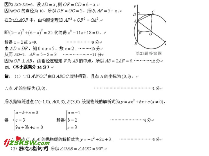 安徽芜湖2011年中考数学试题及答案