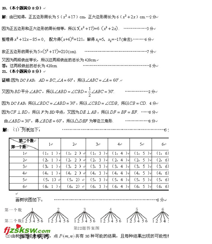 安徽芜湖2011年中考数学试题及答案