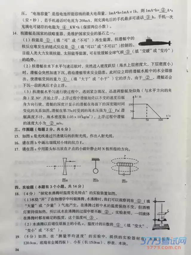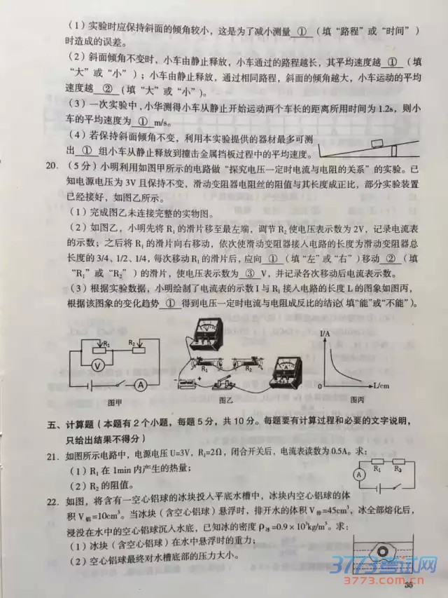 2015乌鲁木齐中考物理试题及答案评分标